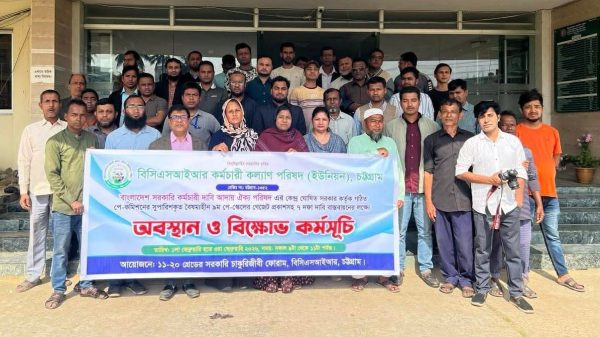 চট্টগ্রাম বিসিএসআইআর কর্মচারী কল্যাণ পরিষদ এর লাগাতার মানব বন্ধন ও বিক্ষোভ