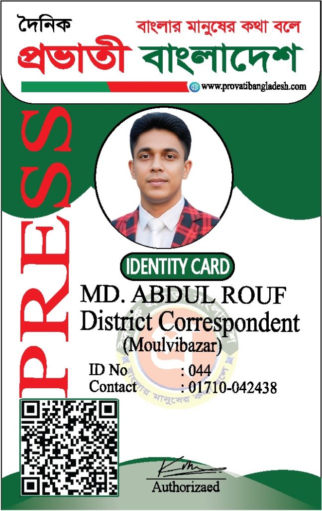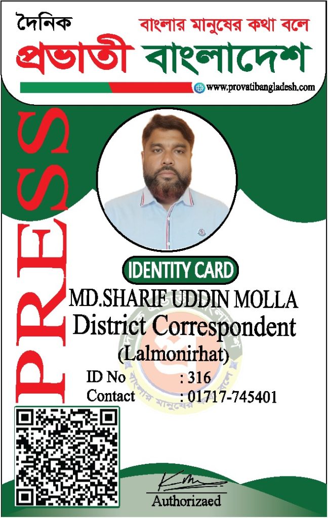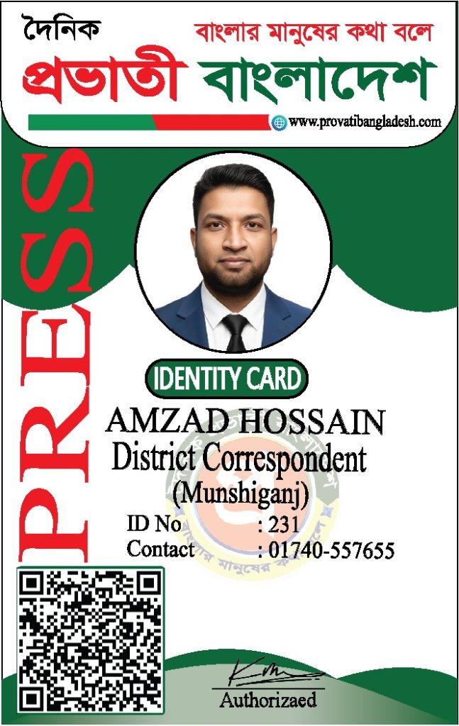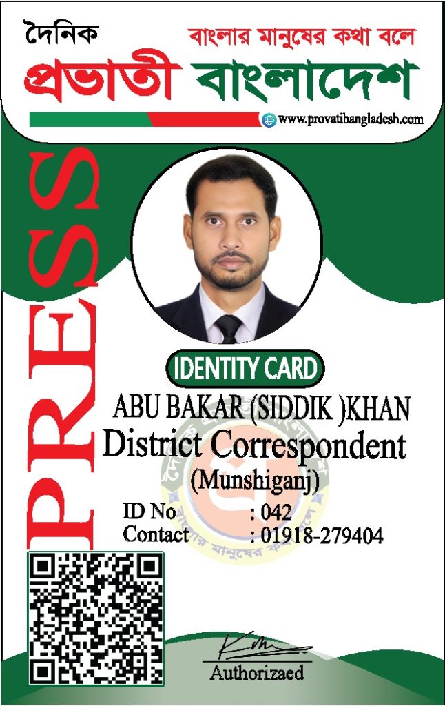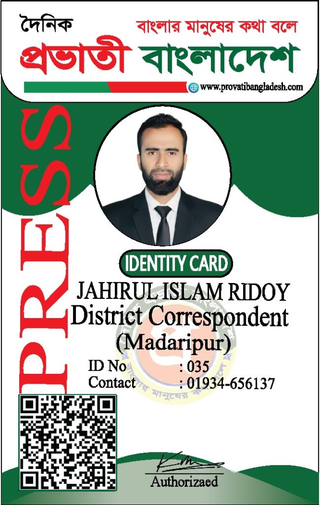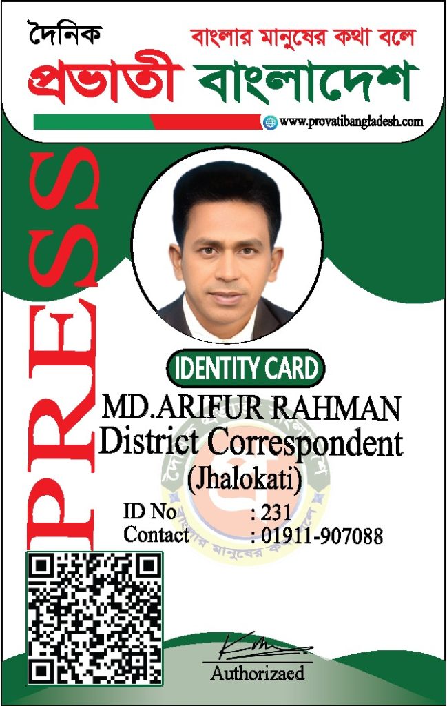 যদি কোনো ব্যক্তির আইডি কার্ডের ছবি আমাদের ওয়েবসাইটে যুক্ত না থাকে, তবে তাকে ‘দৈনিক প্রভাতী বাংলাদেশ’ কর্তৃক কোনো পরিচয়পত্র প্রদান করা হয়নি।