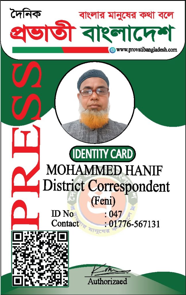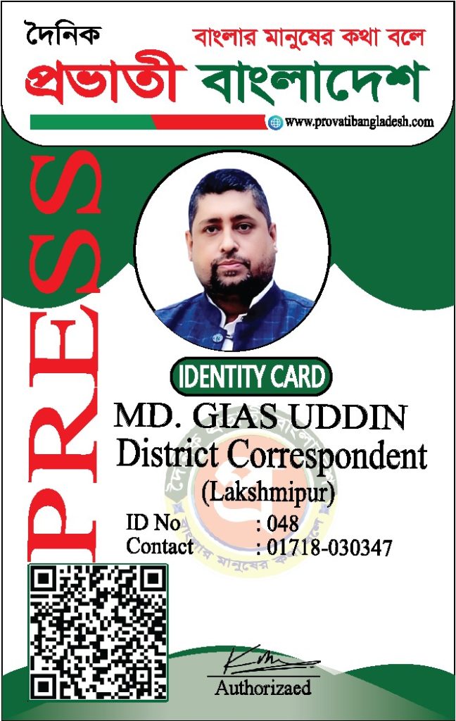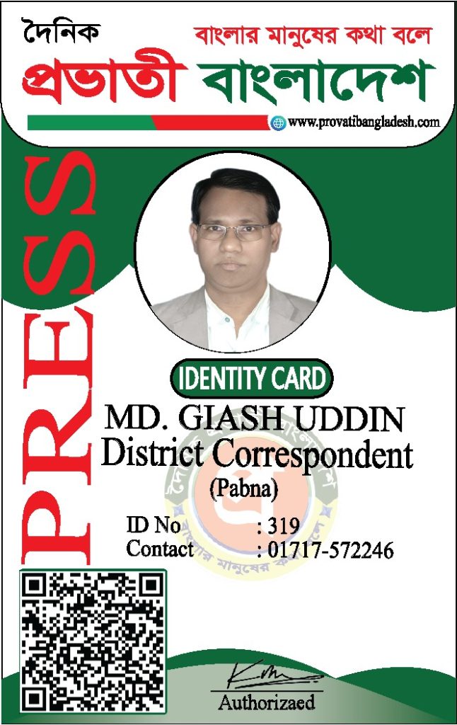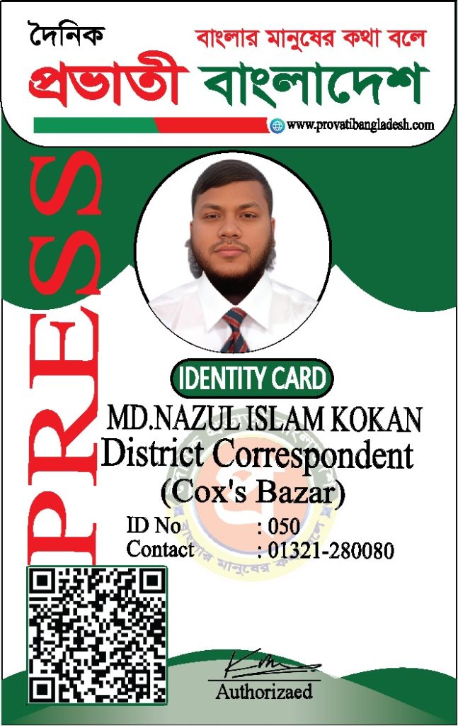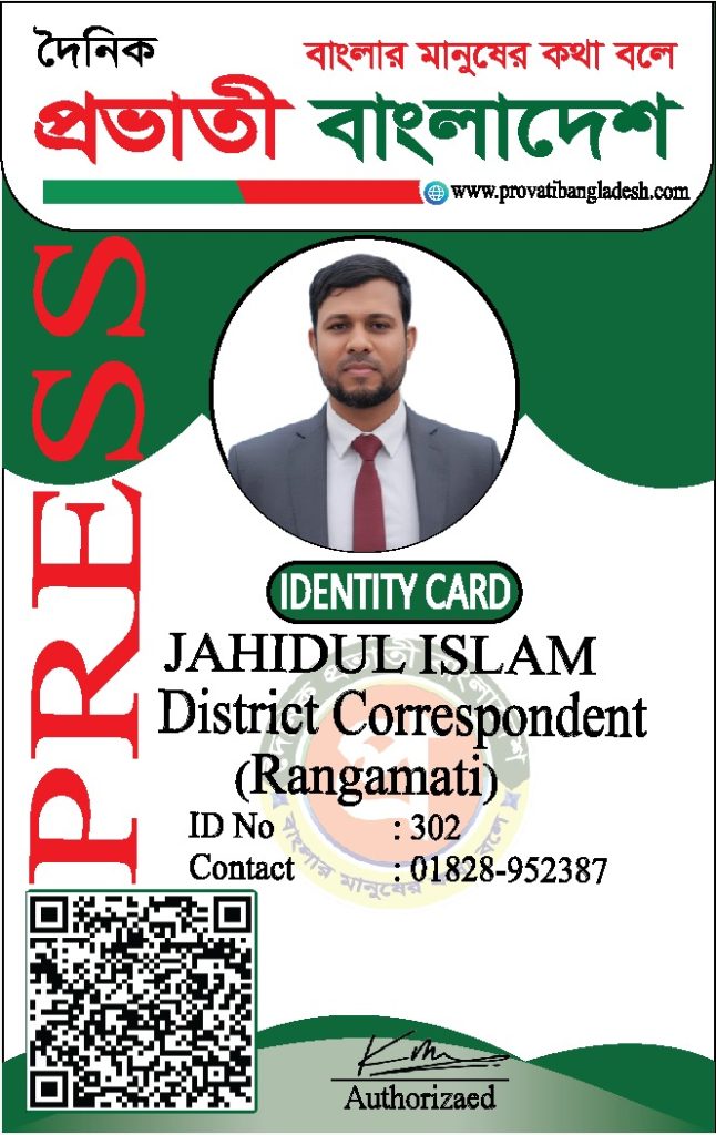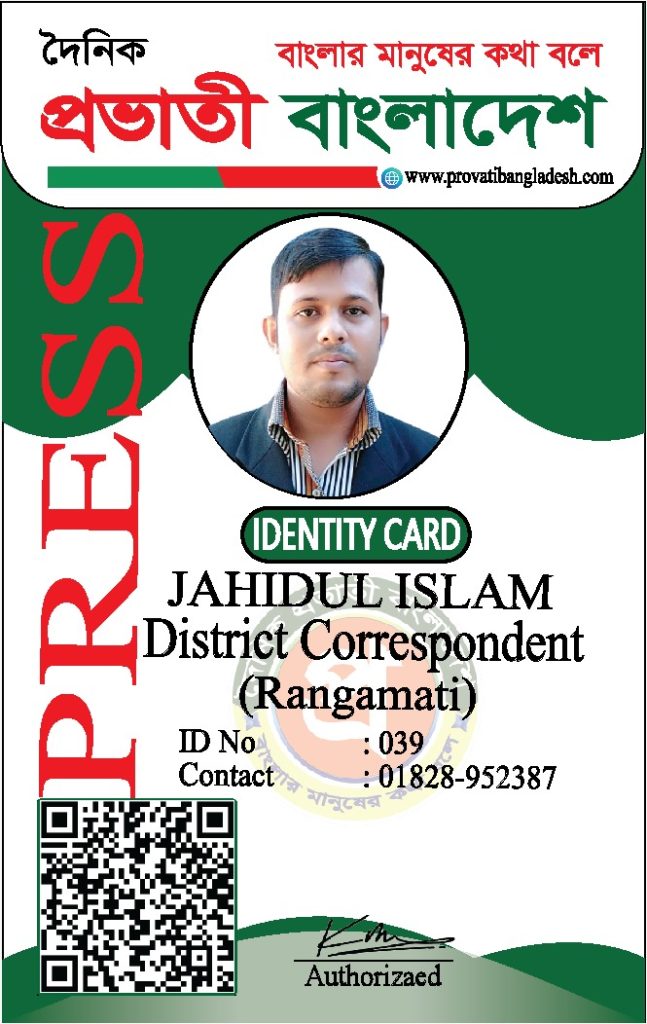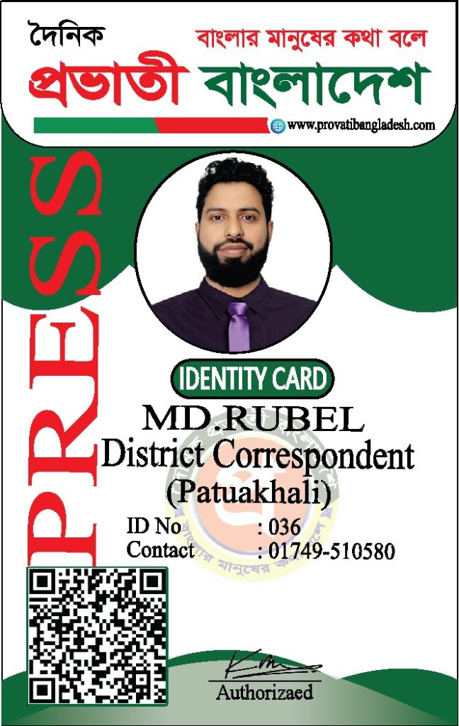 যদি কোনো ব্যক্তির আইডি কার্ডের ছবি আমাদের ওয়েবসাইটে যুক্ত না থাকে, তবে তাকে ‘দৈনিক প্রভাতী বাংলাদেশ’ কর্তৃক কোনো পরিচয়পত্র প্রদান করা হয়নি।