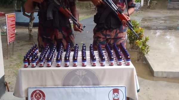 রৌমারীতে বিজিবির অভিযানে বিপুল পরিমাণ ভারতীয় মদ/সহ আ/টক ২